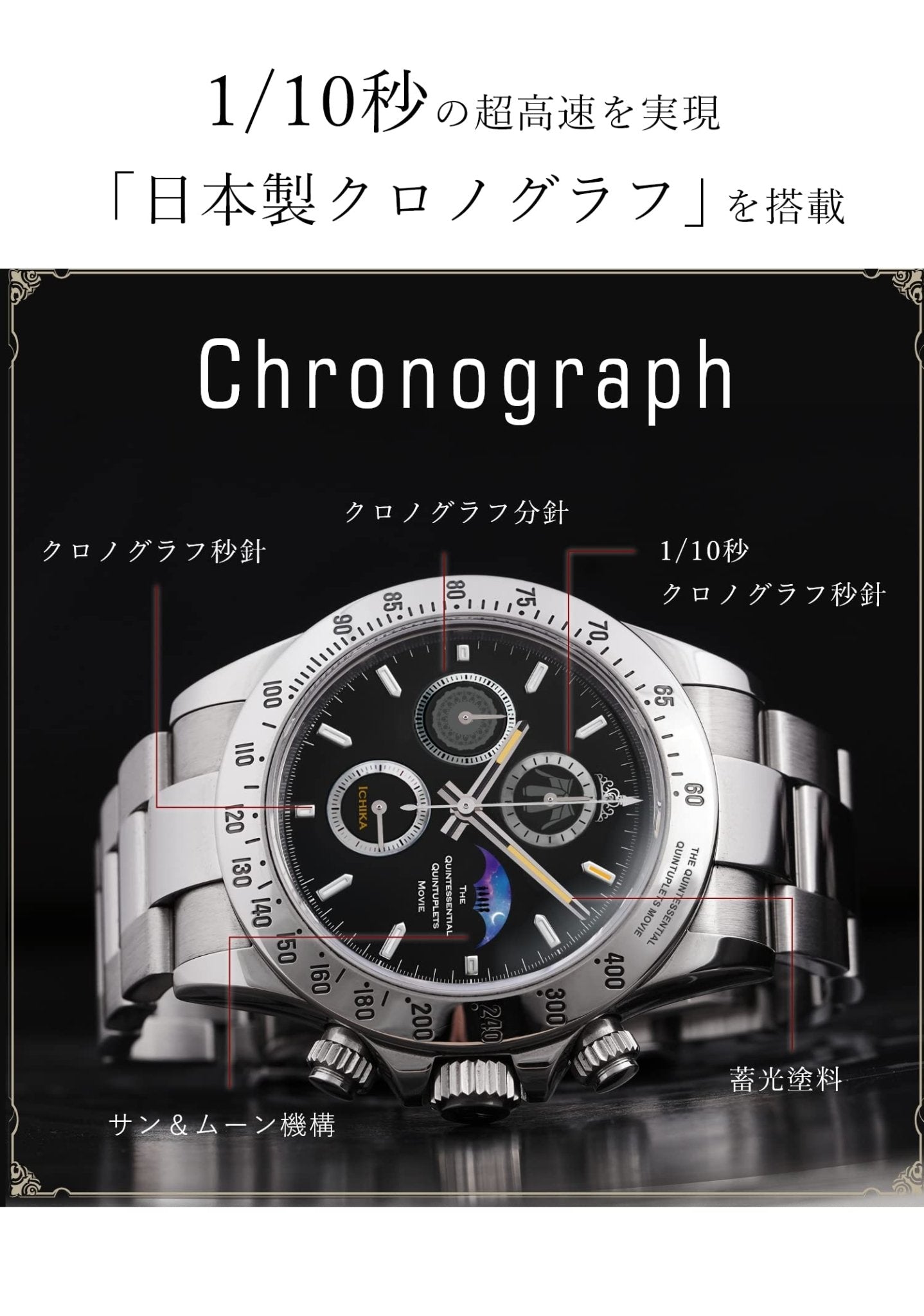 Toei Japan The Quintessential Quintuplet Movie Commemorative Sun & Moon Chronograph Watch Ichika Nakano (Black)