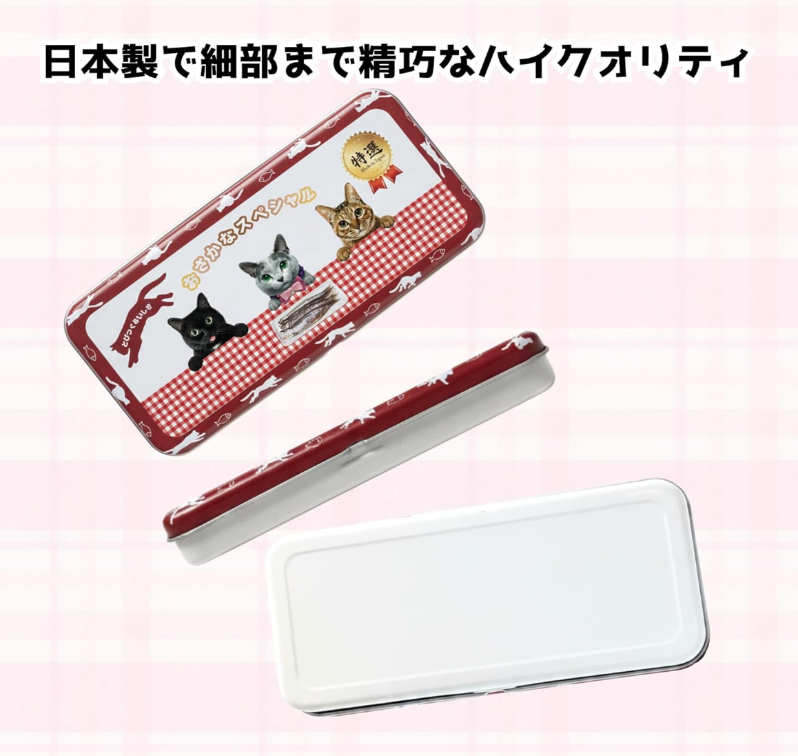 - Open the cat-themed tin carefully.
