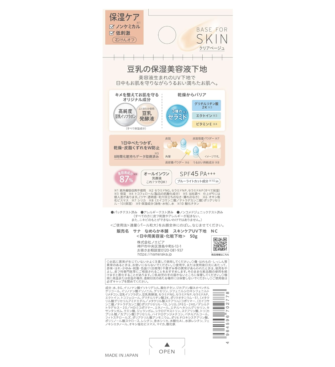 Nameraka Honpo Skincare UV Base NC Clear Beige 50g