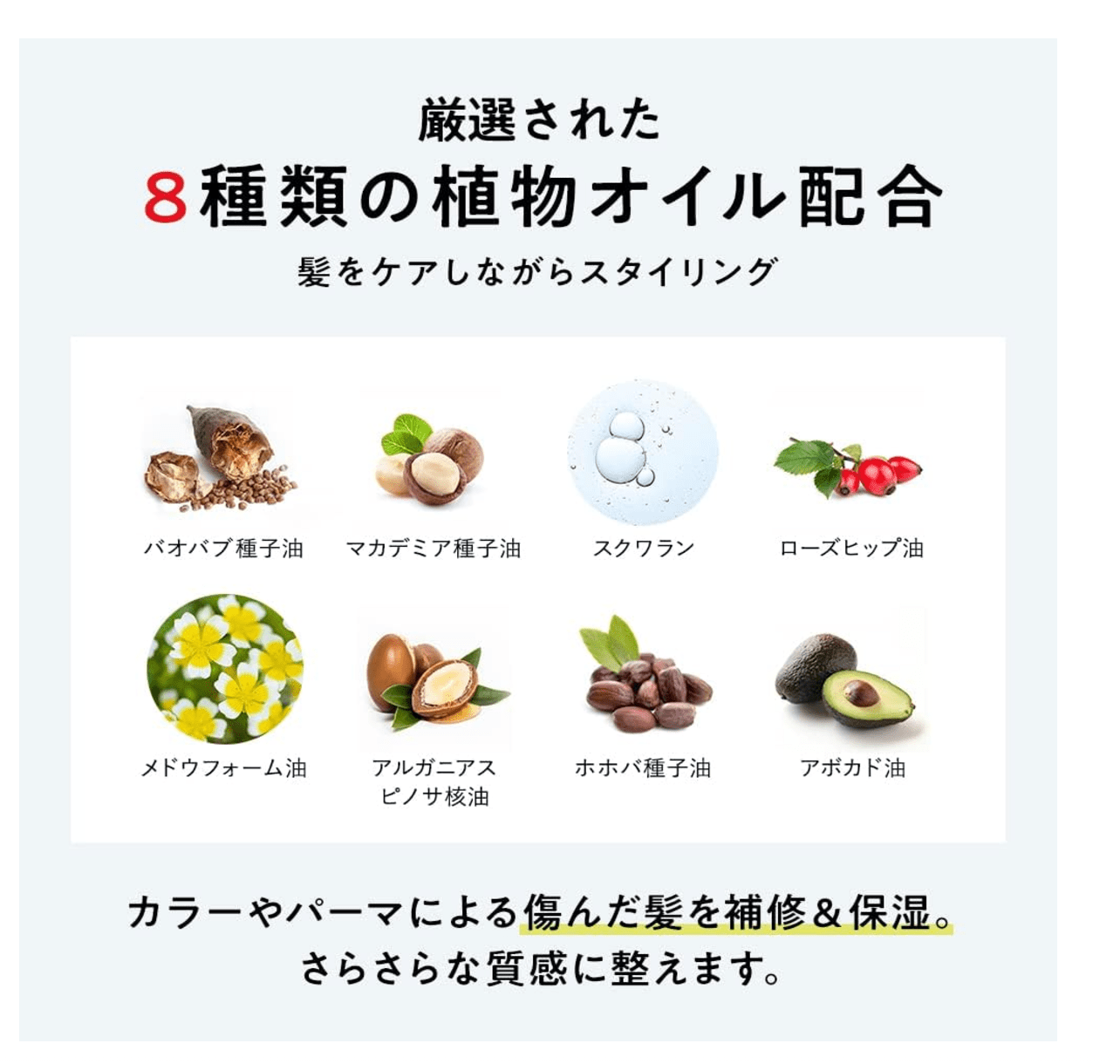 Argan Oil: Deeply hydrates and strengthens hair, reducing breakage and improving texture.