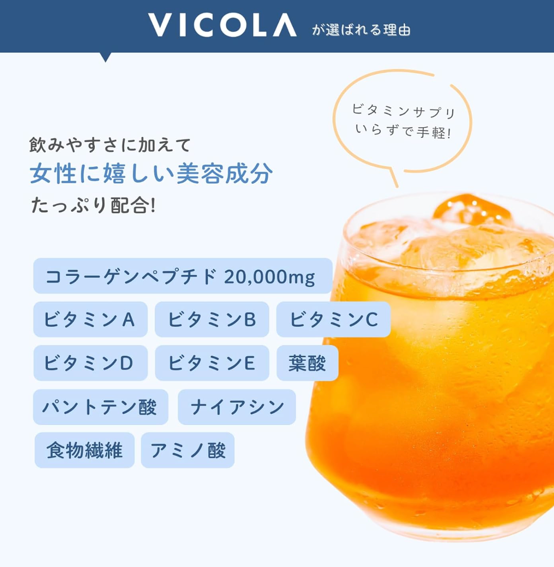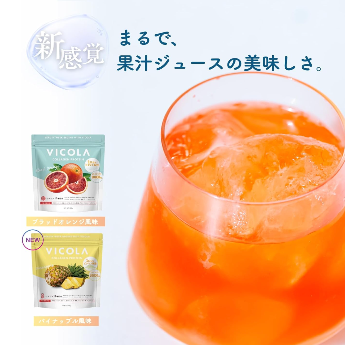Vicola Protein Blood Orange Flavor Clear Protein Drink Powder With Collagen And Vitamins 30g is a light protein drink from Japan 🇯🇵. It is designed to help support daily nutrition in a simple way. The flavor is fresh and citrus-like. It is inspired by blood orange. The drink feels clear and smooth. It is not thick like many protein shakes.